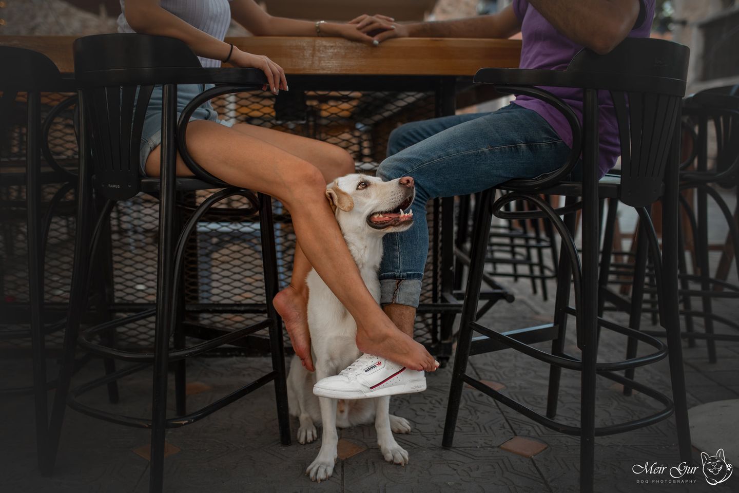 הוא ישב עם הבעלים שלו, קרן ואסף בבית קפה שכונתי, וילד שהיה במקום רץ סביב הכלב באופן מטריד. הם העירו לילד וביקשו ממנו להפסיק לרוץ, והוא המשיך עד שנפל על